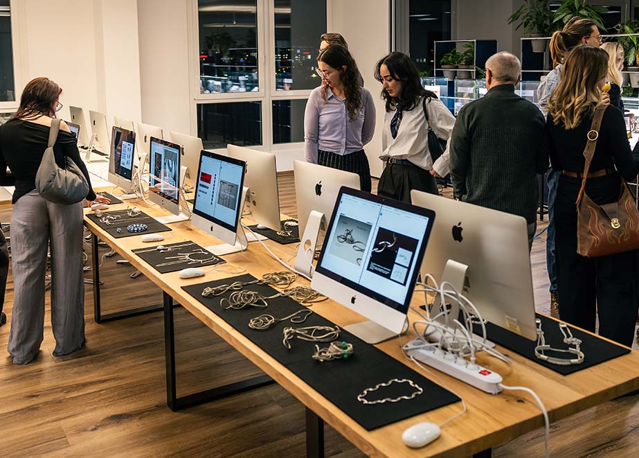 Begleitend zum Designprozess erhielten die Studierenden Einblicke in die industrielle Schmuckfertigung, unter anderem bei Besuchen der Unternehmen FBM in Mönsheim und der egf Manufaktur in Pforzheim. Die Jury – bestehend aus Professorin Christine Lüdeke, Juwelier Georg Leicht, Schmuckdesigner Lukas Grewenig, Dr. Fernando Fastoso sowie Cornelie Holzach, Leiterin des Schmuckmuseums Pforzheim – zeigte sich beeindruckt von der Qualität und konzeptionellen Tiefe der Arbeiten.