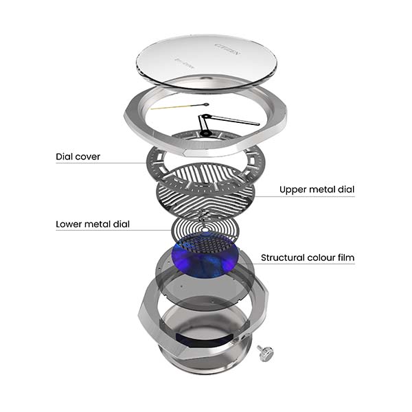 Die Gestaltung der PHOTON-Modelle greift das Thema Licht konsequent auf. Mehrschichtige Zifferblätter mit dreidimensionalen Ausschnitten erzeugen je nach Lichteinfall wechselnde Farbreflexionen. Grundlage ist eine spezielle Strukturfolie, die Farben nicht durch Pigmente, sondern durch Lichtbrechung erzeugt. Das Gehäuse besteht aus Super Titanium, einer von CITIZEN entwickelten Materialtechnologie, die besonders leicht, kratzfest und hautverträglich ist. Die Modelle verfügen über ein integriertes Design mit fließendem Übergang zwischen Gehäuse und Armband.