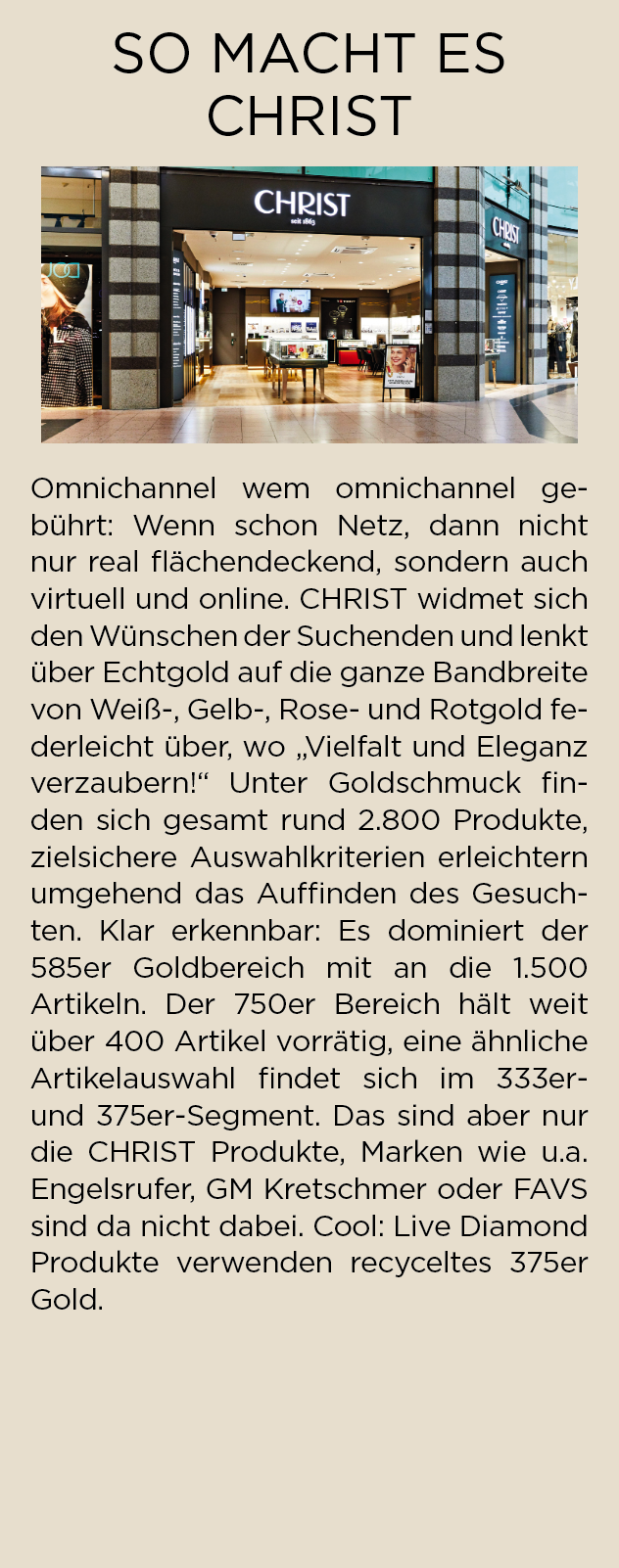 Nach einer Phase von Inflation, Zinsanstiegen und Konsumzurückhaltung zeichnet sich eine Stabilisierung ab. Viele Fachhändler erwarten, dass die Kauflaune Ende des Jahres wieder zunimmt. Gold kann dabei als Symbol für diesen Aufschwung dienen: als Material mit Tradition, als Rohstoff mit Wertsteigerungspotenzial und als Schmuck mit emotionaler Strahlkraft. Wer als Juwelier frühzeitig die richtigen Akzente setzt und das Goldsortiment hochwertig präsentiert, sendet ein klares Signal an die Kunden: Hier verbinden sich Wert und Schönheit, Sicherheit und Emotion.