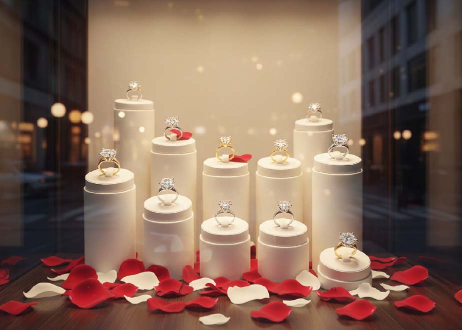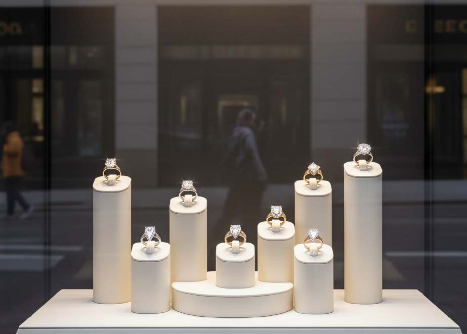 Der stationäre Handel kann dieser digitalen Dominanz nur begegnen, wenn er selbst zum Erlebnis wird. Das beginnt bei der Präsentation im Geschäft. Ein Verlobungsring darf nicht im allgemeinen Sortiment untergehen. Er braucht eine eigene Bühne mit klarer, emotionaler Ansprache. Das Schaufenster spielt dabei eine Schlüsselrolle. Es sollte nicht nur Produkte zeigen, sondern Geschichten erzählen. Eine kleine Fläche, die ausschließlich Verlobungsringen gewidmet ist, vermittelt Kompetenz und Fokus. Auch im Geschäft selbst sollte der Kunde spüren, dass dieser Moment vorbereitet ist.