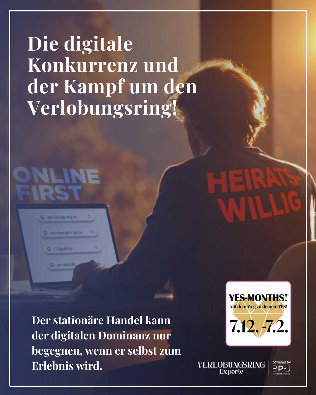 Der Wettbewerb um den Verlobungsring hat sich längst in den digitalen Raum verlagert und er betrifft den stationären Fachhandel direkter als je zuvor. Plattformen wie 123GOLD, Auronia oder Verlobungsring.de sind nicht nur Onlineanbieter, sondern die stärksten Konkurrenten des stationären Juweliers. Sie investieren gezielt in Marketing, Suchmaschinen und soziale Medien, um Kunden abzufangen, bevor diese überhaupt ein Fachgeschäft betreten. Mit hohen Werbebudgets, dominanten Google-Rankings und professionellen Online-Konfiguratoren besetzen sie jene digitalen Kontaktpunkte, an denen früher der persönliche Juwelier gefragt war.
