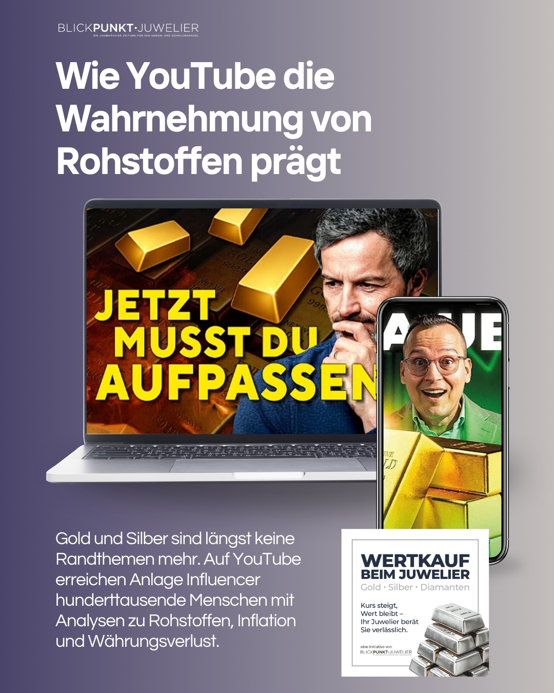 Blickpunkt·Juwelier beobachtet, dass diese mediale Dauerpräsenz das Verhalten messbar verändert. Kunden kommen informierter, sprechen über Kurse, Materialwerte und Feingehalte. Gold und Silber werden nicht mehr nur als Schmuck oder Anlageform gesehen, sondern als reale Wertbasis. Influencer tragen damit wesentlich dazu bei, dass Rohstoffe wieder stärker in den Alltag wirtschaftlicher Entscheidungen rücken.