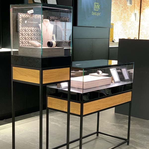 HOLGER MÜLLER (Geschäftsführer): Der Schwerpunkt liegt klar auf der Beleuchtung für den Juwelier – sei es im Schaufenster, in der Vitrine oder direkt am Verkaufsplatz. Unser Ziel ist es, Juwelieren Werkzeuge an die Hand zu geben, mit denen sie ihre Präsentation hochwertiger gestalten können, ohne große Umbaumaßnahmen vornehmen zu müssen. Mit wenigen, gezielten Maßnahmen bieten wir die Möglichkeit, den Verkaufsraum und die Schaufenstergestaltung auf den neuesten Stand zu bringen. Wir setzen hierbei auf energieeffiziente LED-Technologien, die nicht nur eine optimale Ausleuchtung gewährleisten, sondern auch die Brillanz von Schmuckstücken perfekt betonen. Zudem achten wir darauf, dass unsere Lösungen nachhaltig, flexibel und einfach in bestehende Ladenkonzepte integrierbar sind.