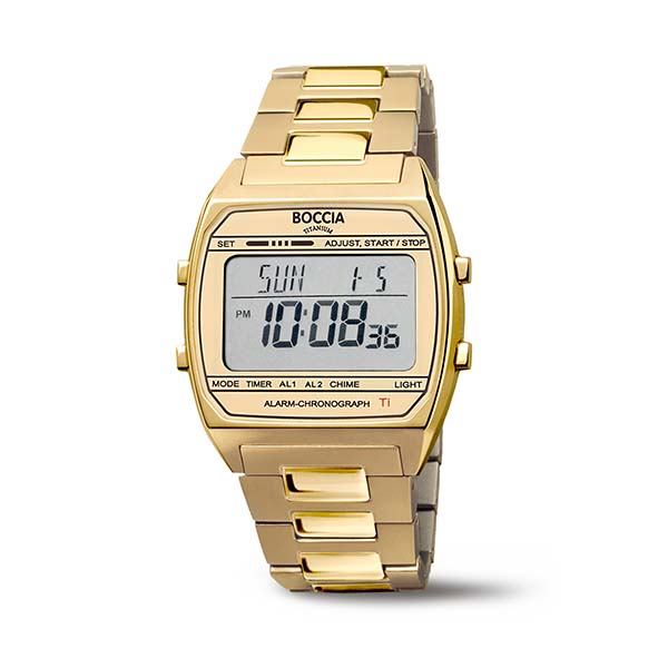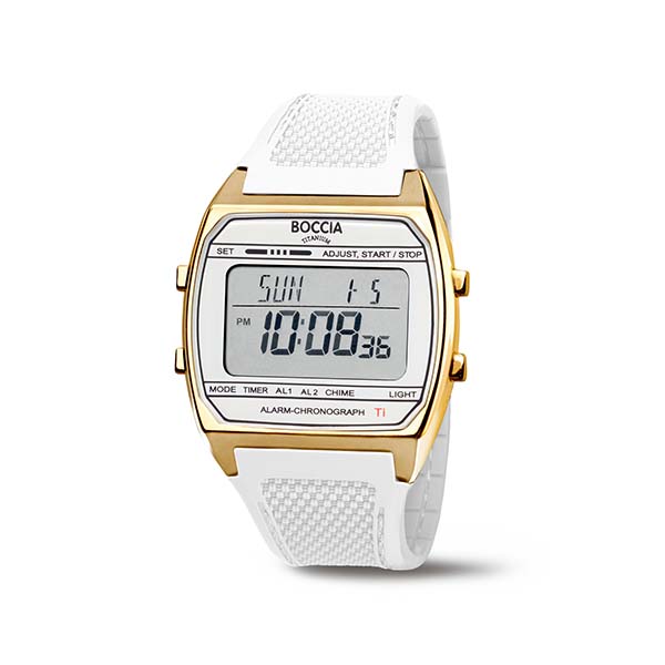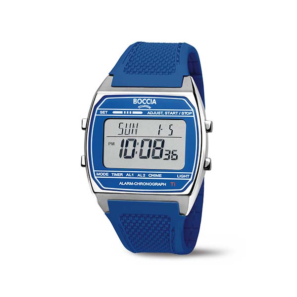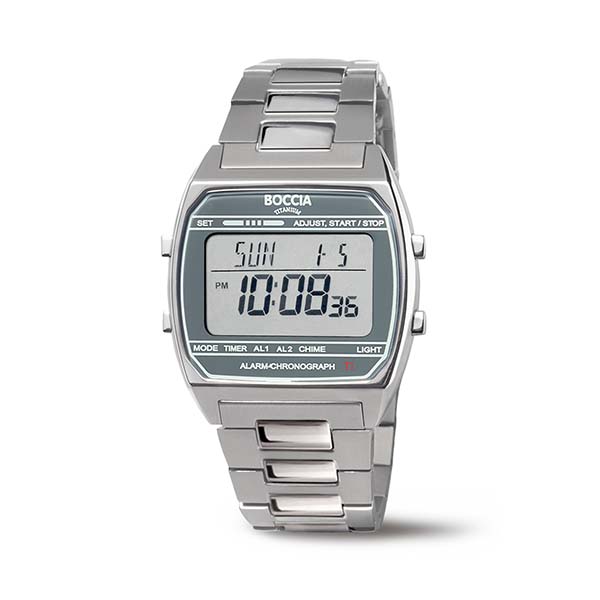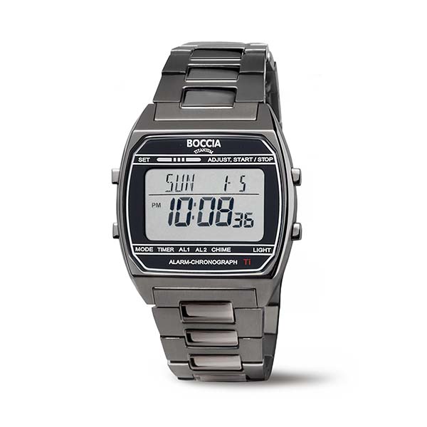 Mehr als Design: Weltzeit, Timer, Weckfunktion und LED-Beleuchtung machen die TI22 zum Allrounder. © Boccia Titanium