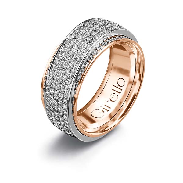 Jeder GIRELLO Drehring steht für eigenständiges Design und sorgfältige Handarbeit. Schmuckdesigner, Gold- und Platinschmiede, Techniker, Gemmologen und Diamantgutachter arbeiten eng zusammen, um die charakteristischen Ringe zu fertigen. Sämtliche Diamanten werden im hauseigenen Diamantlabor geprüft und nach den 4C-Kriterien bewertet. Das eingravierte GIRELLO Signet garantiert Materialien höchster Güte, nachhaltige Herkunft und exzellente Verarbeitung.