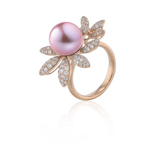 NEUHEITEN HESSE: 750/-RG Ring mit Ming Perle und Diamanten: Ein Highlight der neuen Kollektion: Ein eleganter Ring aus 750/- Roségold mit 136 Brillanten (H/SI, 1,15 ct). Die rosé violette Ming Perle wird von fein geschwungenen, mit Diamanten besetzten Blättermotiven umspielt. Das Ergebnis ist ein feminines, luxuriöses Schmuckstück mit außergewöhnlicher Strahlkraft. // Anhänger mit Ming-Perlen und Diamanten: Anhänger 6 Brillanten H/SI 0,17ct. Süßwasser-Zuchtperle „Ming“ rund multicolour 10-12mm Anhänger aus runden Ming-Zuchtperlen in Grün- und Blautönen mit Verbindungsstücken aus 750er Roségold, besetzt mit Brillanten. Auch in einer Variante aus Tahiti- Perlen und mit 750er Weißgold erhältlich. © Hesse