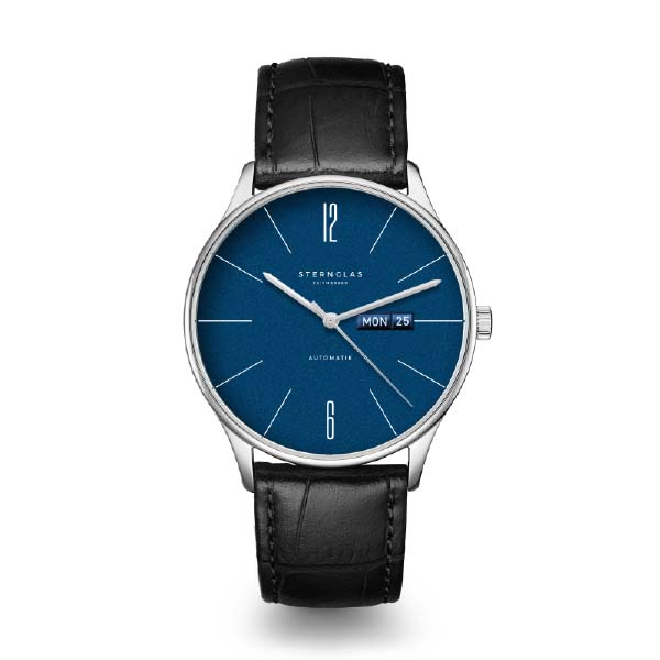 Berlin: Elegante 38 mm Automatikuhr mit Edelstahlgehäuse und Rindslederarmband, blaues Zifferblatt mit Datum- und Wochentagsanzeige, wasserdicht bis 5 bar, UVP: 449,- // Hamburg Chrono: Sportlich-eleganter Quarz-Chronograph, 42 mm Edelstahlgehäuse,, schwarzes Rindslederarmband, wasserdicht bis 5 bar, limitiert auf 1.999 Exemplare, UVP: 349,- // Naos Mondphase: 38 mm Edelstahl-Gehäuse, schwarzes Rindslederarmband, Mondphasenanzeige mit Naos Sternenbild, Mondphasengravur auf der Rückseite, wasserdicht bis 5 bar, UVP: 299,- © Sternglas