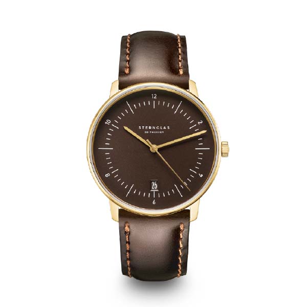 Marus 2.0: 42 mm Automatikuhr mit Edelstahlgehäuse und Edelstahl-Armband, schwarzes Zifferblatt wasserdicht bis 20 bar, Gangreserve 42 h, UVP: 599,- // Hamburg: 42 mm silber satiniertes Edelstahlgehäuse und braunes Kalbslederarmband, weißes Zifferblatt, wasserdicht bis 5 bar, UVP: 349,- // Naos Edition Heritage: 38 mm Quarz-Werk mit vergoldetem Gehäuse und braunem Ringslederarmband, braunes Zifferblatt, wasserdicht bis 5 bar, UVP: 249,- © Sternglas