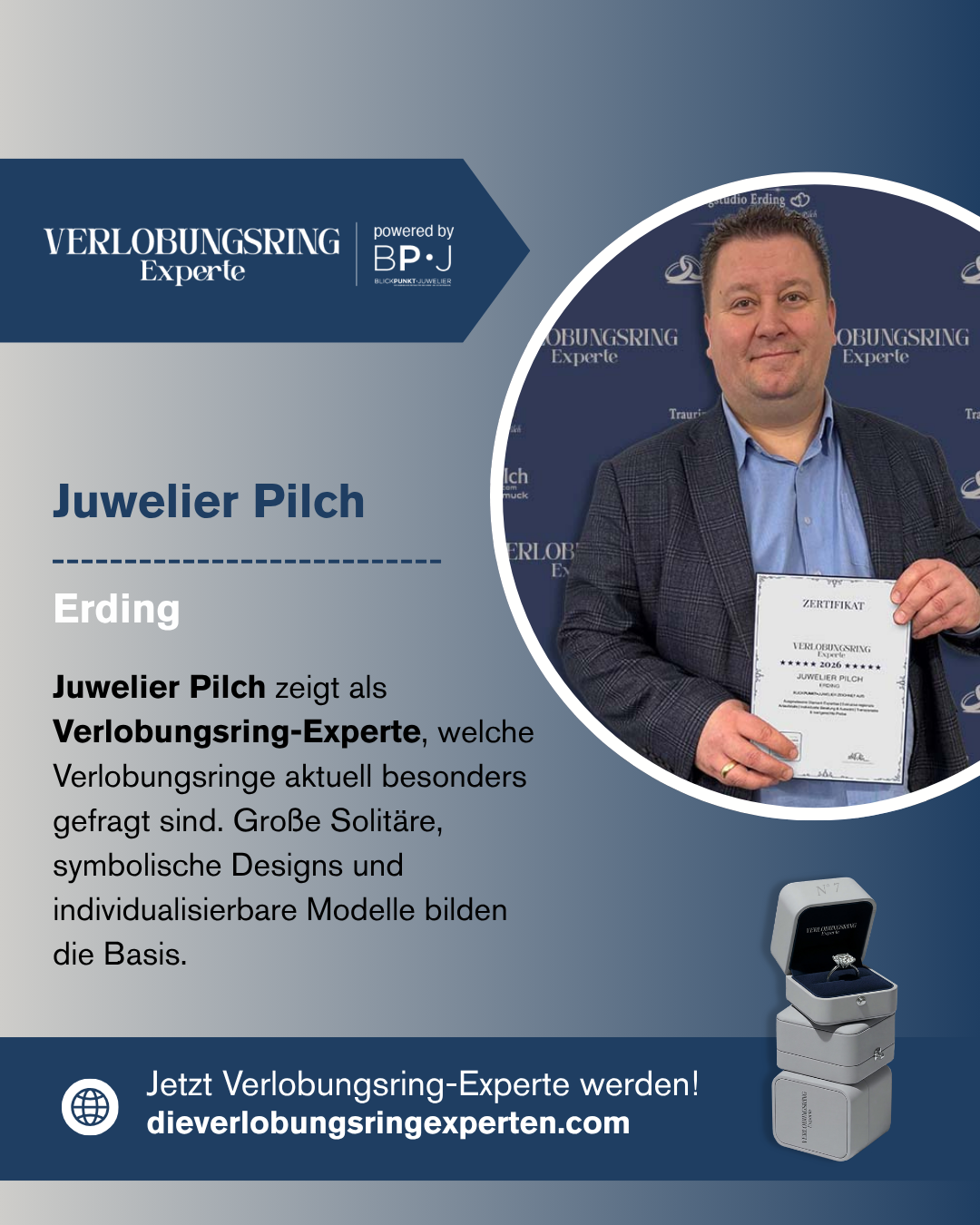 Juwelier Pilch ist Ihr Spezialist für Trauringe und Verlobungsringe in Erding. Handgefertigt mit persönlicher Beratung. © BPJ/ Juwelier Pilch