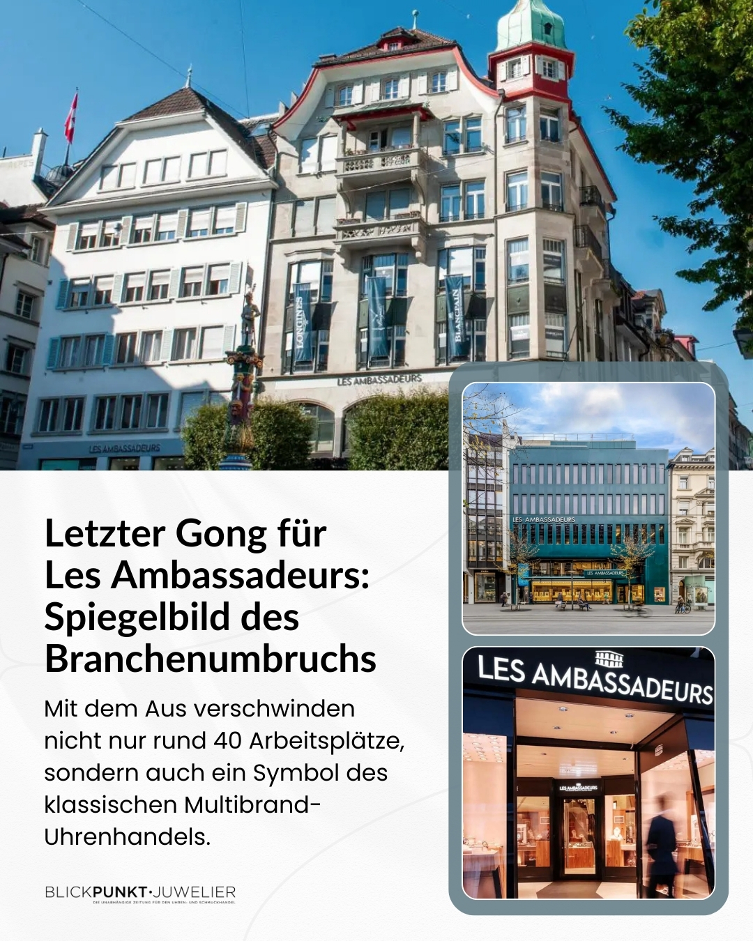 Les Ambassadeurs war seit fast 60 Jahren ein fixer Bestandteil der Schweizer Luxuslandschaft. Doch die strukturellen Herausforderungen, die im Frühjahr bereits klar sichtbar waren, haben sich bestätigt. Die Suche nach Investoren ist gescheitert. Verwaltungsratspräsident Renato A. Vanotti bestätigte in einem Schreiben an die Kundschaft, dass keine tragfähige Lösung gefunden werden konnte. Dabei hatte das Unternehmen versucht, das Konzept neu auszurichten, unabhängige Marken stärker in den Fokus zu rücken und sich von den großen Konzernen zu emanzipieren. Diese Strategie konnte jedoch die strukturellen Probleme nicht abfedern.