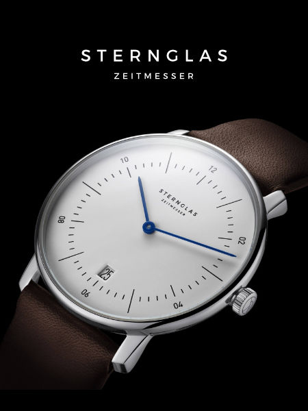 STERNGLAS Zeitmesser ist eine junge Uhrenmarke aus Hamburg, die der Gründer und Designer Dustin Fontaine im Jahr 2016 mit einem Kickstarter-Projekt auf den Markt brachte. Im klassischen Bauhaus-Stil gehalten, bestechen die Uhren durch klares Design und gute Verarbeitung. Der Fokus liegt auf dem Wesentlichen mit Liebe zum Detail. STERNGLAS fertigt erschwingliche Quarz- und mechanische Uhren mit sehr gutem Preis-Leistungs-Verhältnis und ist weltweit bei 500+ Fachhändlern erhältlich.