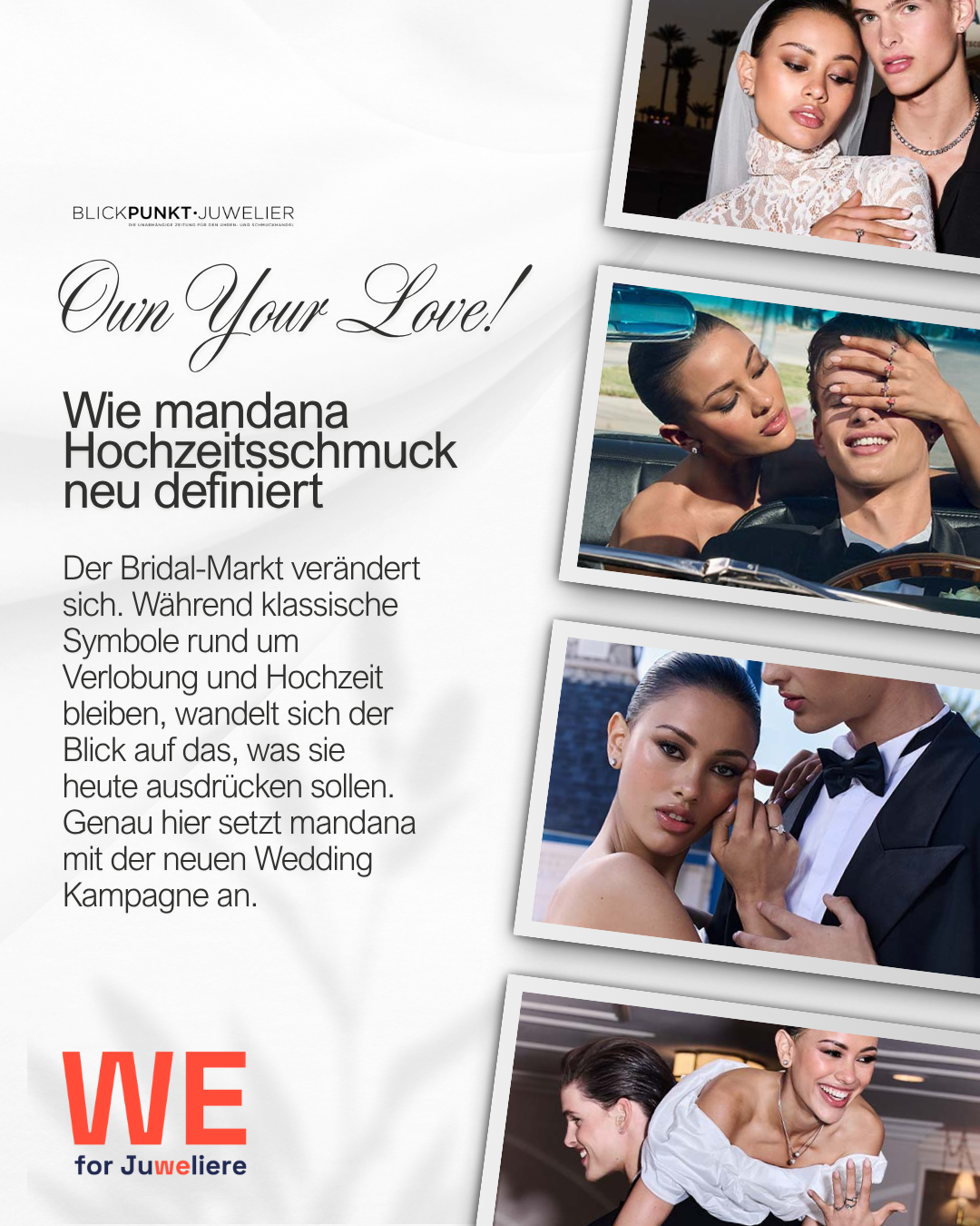 Der Bridal-Markt verändert sich. Während klassische Symbole rund um Verlobung und Hochzeit bleiben, wandelt sich der Blick auf das, was sie heute ausdrücken sollen. Genau hier setzt mandana mit der neuen Wedding Kampagne an. Unter dem Motto „Own your love“ zeigt die Marke Bridal Jewellery nicht als festes Konzept, sondern als Ausdruck einer persönlichen Haltung. Es geht nicht um das Befolgen eines vorgegebenen Ablaufs, sondern um eine bewusste Entscheidung füreinander. Um Schmuck, der nicht nur einen Moment begleitet, sondern gemeinsame Werte sichtbar macht.
