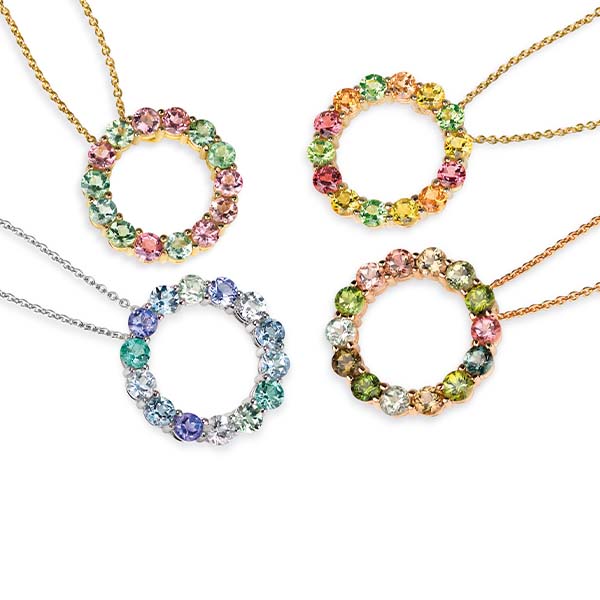 4 Seasons Anhänger Frühling, Sommer, Herbst und Winter mit unterschiedlichen Farbedelsteinen in 750 Gold // Just Simple Ringe, Tansanit, grüner Turmalin, Aquamarin in 750 Weißgold // Lieblingsstücke Turmaline mit Brillanten in 750 Weißgold © RHB