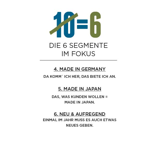 Die Botschaft ist eindeutig: Verlässlichkeit, Kompetenz und Übersicht sind wichtiger als Masse. Mit der Strategie „6 statt 10“ kann der Fachhandel seine Rolle als Experte festigen, sich vom Onlinehandel abgrenzen und seine Zukunft sichern.