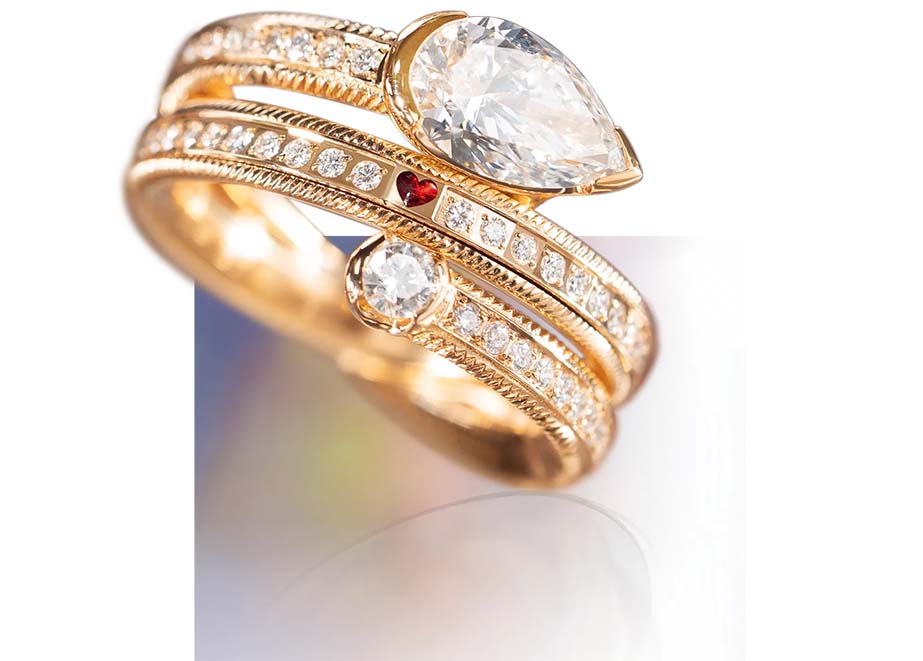Der Ring Diamanttropfen und die Spiegelglanzfassung